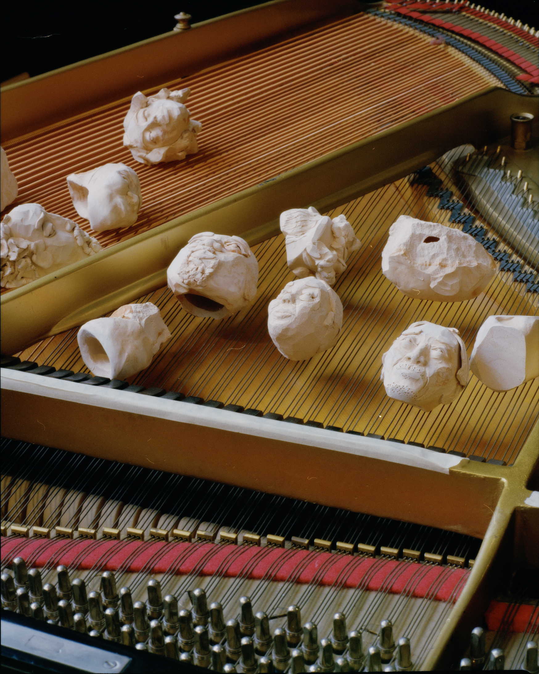 With custom clothing designed in collaboration with Grace Wales Bonner, as well as small ceramic sculptures of musical inspirations placed atop the piano’s keys and strings to function as resonators/abstractors of sound.